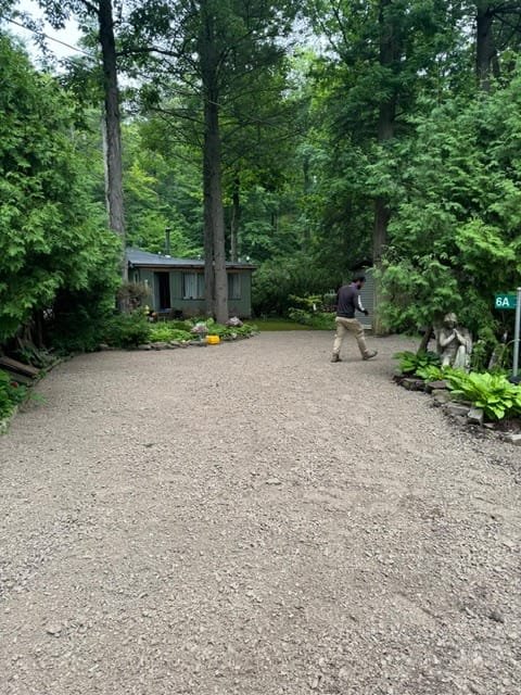 - Well-kept yard, Large dolomite chipping driveway, Maintained riverside
