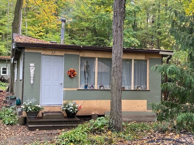 This cottage is located on the hill close to the edge of the property line.